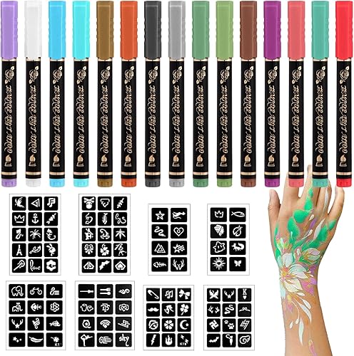 Temporary Tattoo Markers for Skin 15 Body Marker+ 94 Tattoo Stencils for Kids and Adults,Skin-Safe & Cosmetic Quality,Birthday Gift Ideas Teens 12 13 14 15 16 17 18