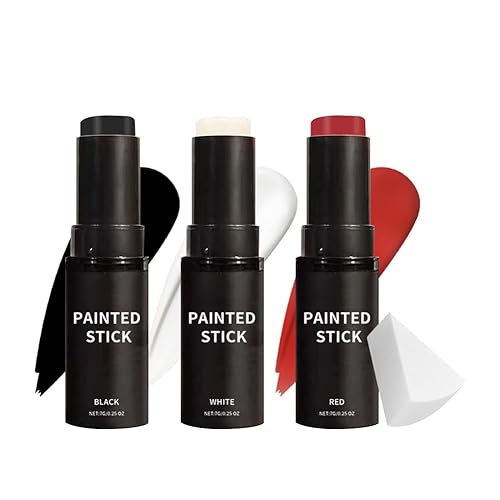 Red, White and Black Face Body Paint Sticks,3 Pcs Halloween Makeup Kit for Adults Teens,Red White Blue Face Paint,Halloween Face Body Makeup Set for Ghost,Clown,Zombie,Skeleton (black white)