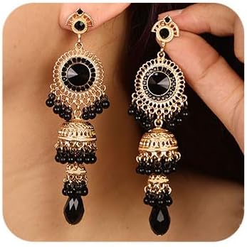 Missgrace Bohemian Indian Purple Red Black Rhinestone Dangle Tassel Long Earrings for Women Vintage Chandelier Earrings Beaded Crystal Jhumka Jhumki Tassel Studs Traditional Earrings for Women