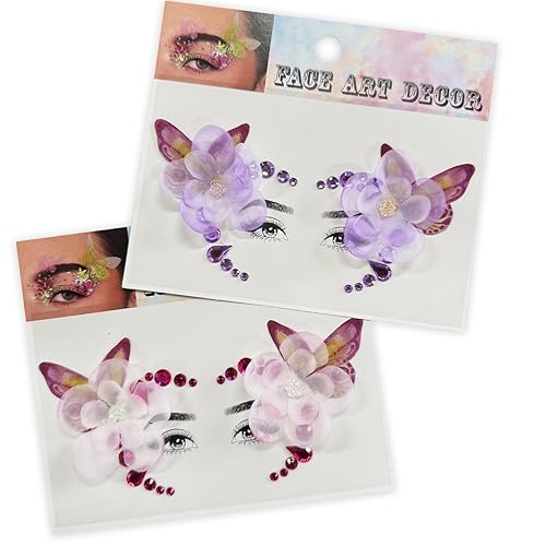 Rhinestone Eye Gems with Fabric Flowers, Self Adhesive Green and Blue Face Gems for Women, Elegant Eye Jewel Stickers for Halloween and Festival Wedding Party Makeup