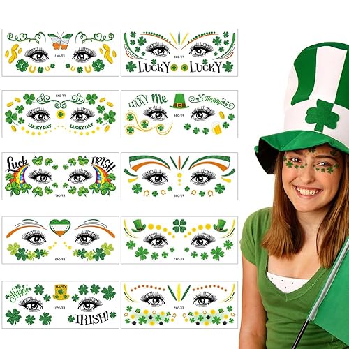 St.Patrick'S Day Face Temporary Tattoos,10 Sheets Shamrock Temporary Tattoo Stickers for Women Men in Party Favors Supplies Irish St Patricks Day Decorations Accessories