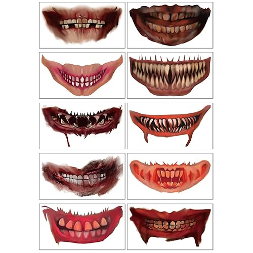 Halloween Temporary Tattoos,Halloween Clown Horror Mouth Stickers Face Decals,Waterproof Cartoon Fake Tattoos, Body Makeup Prank Props for Halloween Party Favor Cosplay Party Decorations Kids Adults