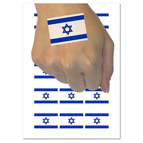 Israel Flag Temporary Tattoo Water Resistant Fake Body Art Set Collection - 54 1" Tattoos (1 Sheet)