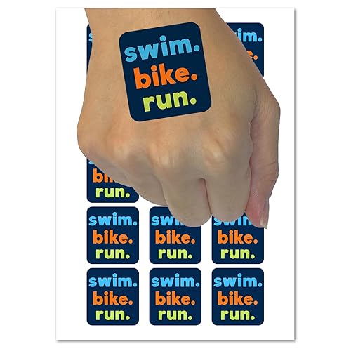 Swim Bike Run Words Triathlon Temporary Tattoo Water Resistant Fake Body Art Set Collection - 54 1" Tattoos (1 Sheet)