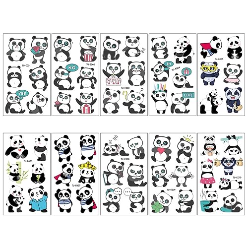 Panda Temporary Tattoo for Kids, Cute Animal Tattoo Waterproof Fake Tattoos for Kids Birthday Gifts Ideas Accessories Panda Party Favors Boys Party Bags Fillers Goodie Bags Stuffers 10 Sheets