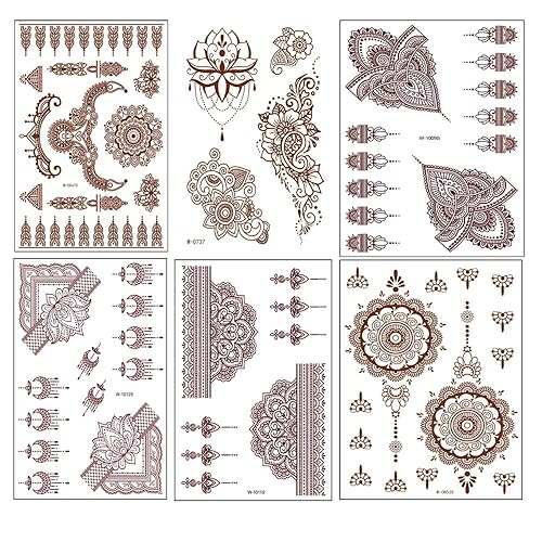 Leadigol Brown Henna Temporary Tattoo Stickers for Women Girls Fake Tattoo Lace Floral Totem Tattoo Body Art Stickers Waterproof Removable Fake Tattoos