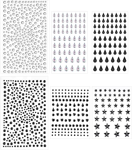 6 Sheets Rhinestones Stickers, Self Adhesive Bling Diamond Stickers Stick on Black Gems for Makeup Jewels Stickers for Halloween Party Face Eye Belly Body Nail Decorations