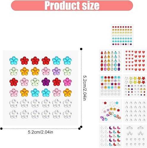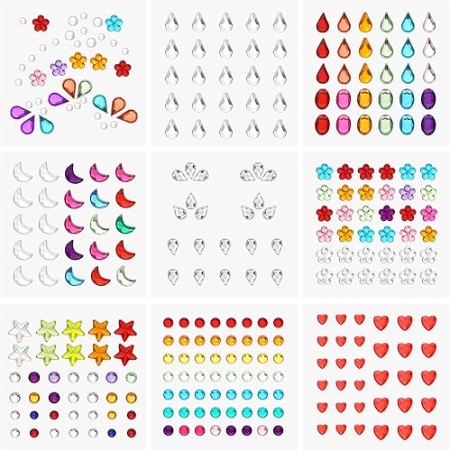 9 Sheets Face Gem Stickers, Self Adhesive Festival Face Gems Stick On Glitter Face Rhinestone Stickers Face Jewels Stickers for Face Eye Arm Nail Body Decorations (Multicolored)