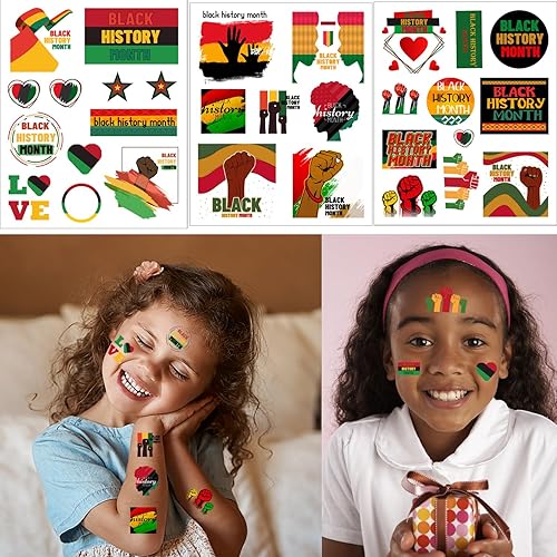 CupaPlay 300PCS Black History Month Party Favors Tattoos Temporary Stickers for Kids - Freedom Day Patriotic Party Supplies Goodie Bag Stuffers Favors Prize(30 Sheets)