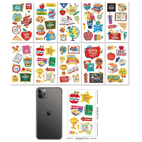 Teacher’s Day Temporary Tattoo,10 Sheets Thank You Teacher Best Teacher Ever Waterproof Fake Tattoos for Teacher’s Day Appreciation Party Favors Goodie Bags Stuffers Party Fillers