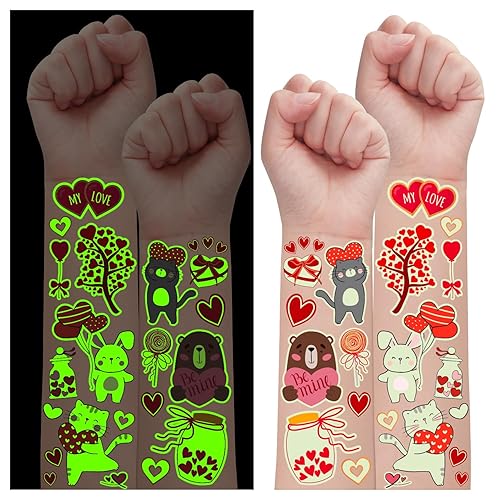 Partywind 330 Glow Styles Valentines Kids Temporary Tattoos, 28 Sheets Valentines Heart Love Tattoo Stickers for Party Decorations Supplies, Valentines Exchange for Kids Classroom