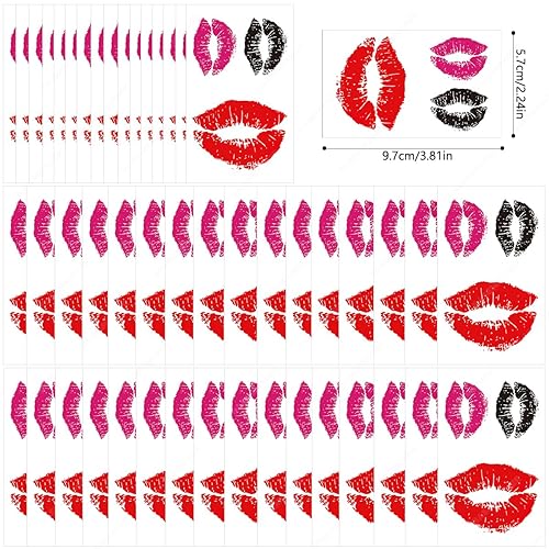 150Pcs Valentine's Lip Kiss Temporary Tattoos Sticker Red Black Lip Print Waterproof Fake Tattoo Stickers Face Body Decals for Women Girls Lover Theme Decorations Favor Party Supplies