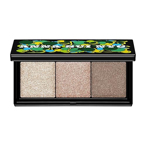 ANNA SUI 3-Color Palette, Sheer & Layerable Eye & Cheek Makeup, Natural Muted Shades with Pearl Shimmer, Lightweight Blendable Texture, Compact Case, 01 Happy palette with Cheerful beige, 0.26 oz