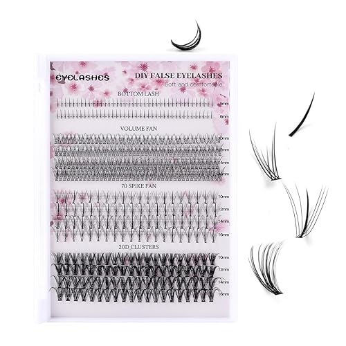 Generic Fishtail False Eyelash Set with Lashes, 14 Rows, 404 Clusters, Natural Curl, 20D 30D Clusters Eyelash Extension Kit with Lash Bond and Seal, Lash Applicator for Self Use (3#)