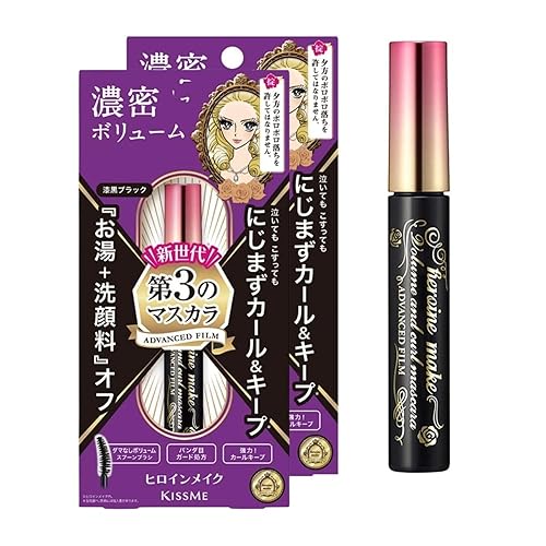 HEROINE MAKE by KISSME Tubing Mascara Waterproof & Long-lasting, Waterproof Mascara Black for Volumizing & Curl with Curvy Brush Advanced Film, 6 Natural Serums for Sensitive Skin, Made in Japan 2 EA