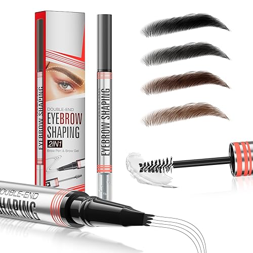 Microblading Eyebrow Pencil and Sealing Eyebrow Gel, 2-in-1 Dual-ended Eyebrow Pen 4-Prong Micro-Fork Tip Applicator Brow Pencil Waterproof Stay on All-day Makeup for Natural Eyebrow, Black