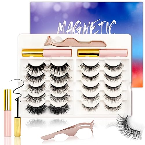 Magnetic Eyelashes Kit,Reusable 3D 5D Magnetic Lashes Set with Waterproof Eyeliner,10 Pairs Mink False Eyelashes Natural Look, No Glue Needed