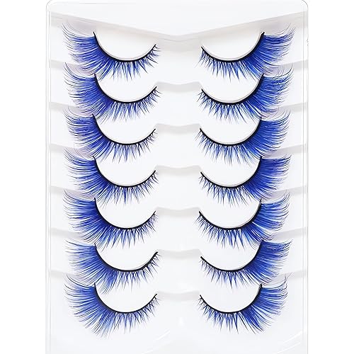 7 Pairs Blue Eyelashes,Natural look Soft Fluffy Colored lashes,Cat Eye False Eyelashes, Suitable For Halloween,Cosplay,Parties,Stage Makeup