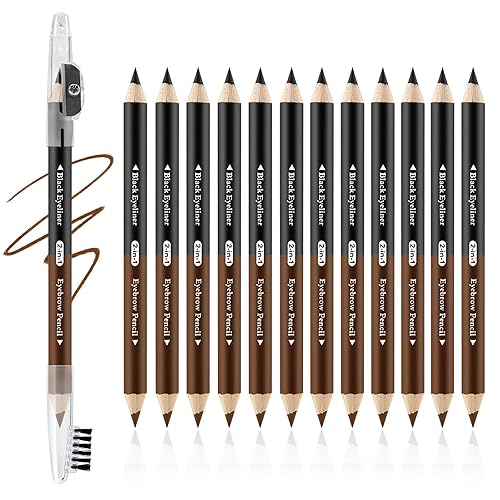 Boobeen 12pcs 2-in-1 Eyebrow Pencils and Black Eyeliner Set,Waterproof Brow Pen with Sharpener and Brush,Long Lasting Eyebrow Pencil for Women,Beginner Friendly,Dark Brown