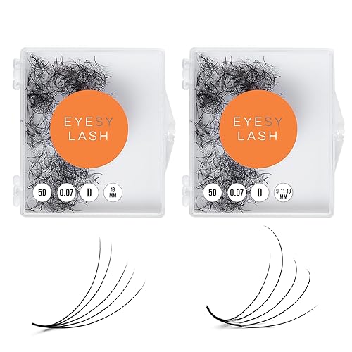 Eyesy Lash 500 Promade Fans 5D 0.07 Size 13mm Curl D & 500 Camellia Lash Extensions 5D 0.07 Size 9-11-13mm Curl D - Premade Lash Fans for Eyelash Extensions