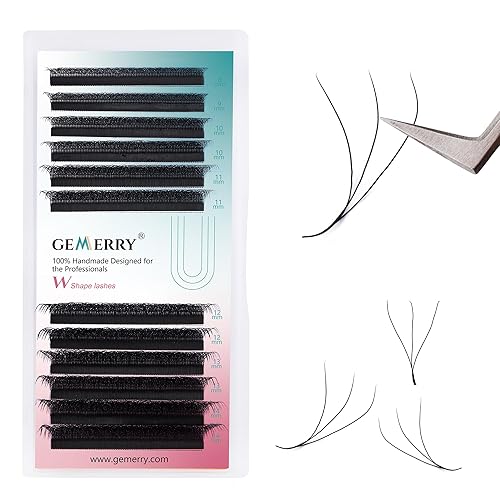 W Eyelash Extensions 3D Premade Fans W Lashes 0.07 C Curl Matte Black W Shaped Volume Fans Easy Fan Lash Extensions by GEMERRY(0.07-C-8-14)