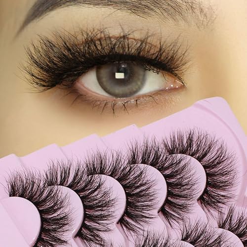 Lashes Natural Look Cat Eye False Eyelashes 5D Volume Fluffy Fox Eye Lashes Wispy 17mm Strip Fake Eyelash Extension, 7 Pairs Pack