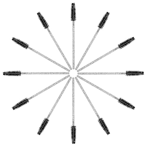 50 Pieces Eyelashes/Eyebrows Brushes, 10CM Lash Removal Cleaning Tools, Crystal Handle, Makeup Tools Mascara Wands(Simple Packaging)-(Crystal Black)