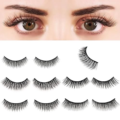 5 Pairs Pack Self Adhesive Eyelashes False Lashes Natural Look Lash Extensions Reuseable Waterproof Wispy Fluffy Lashes Self Adhesive Lashes with Tweezer, lengthen Eyelashes