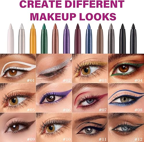 Liquid Eyeliner Colorful 12 Colors Eyeliner Liquid Waterproof Eyeliner Pen Eyeliner Eye Makeup Gift Set for Cosplay