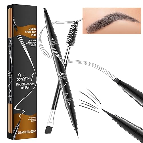 Microblading Eyebrow Pen, 2-In-1 Dual-Ended Waterproof Eyebrow Pencil with 4-Fork-Tip & Ultra-Precise Tip, and an Angled Eyebrow Brush, Eye Brow Pencils for Women -Dark Brown