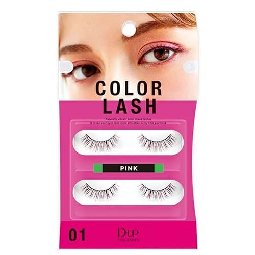 D-UP Natural Look False Eyelashes, False Lashes for Nature Look/Bold Eye Look, Japanese Natural Looking Fake Eyelashes A Day Long Lasting Wear, Lightweight & Reusable, 2 Pairs, Color Lash 01 Pink