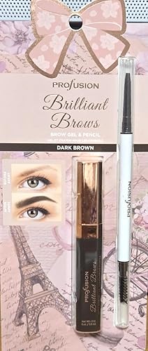 Profusion Brilliant Brows Professional Dual-Ended Dark Brow Gel and Pencil, Eyebrow Makeup Kit