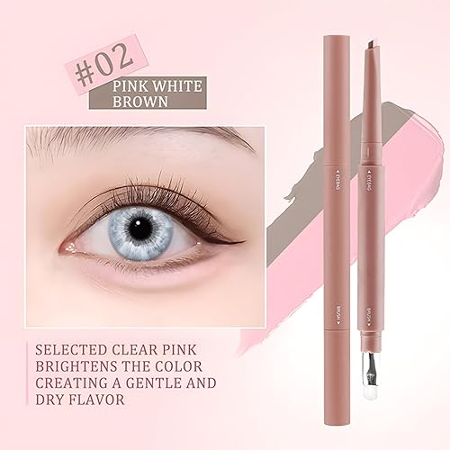 Eye Highlighter, Double-Headed Two-Color Eye Makeup Pencil, Two-in-One Three-Dimensional Eye Makeup Pencil, Brightens Shadows, Highlights Eyes, Anti-Smudge, Professional Eye Tool,PINK WHITE BROWN
