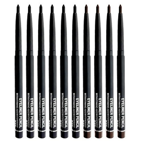 10PCS Black Automatic Waterproof Inner Eyeliner, Eyeshadow & Eyebrow Pencil – Multi-Use Cream Pen for Liner, Shadow & Brows