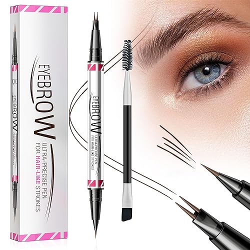 Eyebrow Pen, Brow Pencil 2-in-1 Dual-Ended Microblading Eyebrow Pencil with Micro-Fork-Tip & Precise Brush-Tip Crease Natural Hair-Like Brows, Last All-Day (Brown)