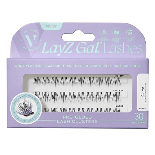 LayZ Gal™ Lash Clusters, Self Adhesive Eyelashes, Individual Lashes Kit, Lash Cluster Kit, Natural Lashes, Pre Styled Flare Shape, Natural Volume, No Glue Needed (Main Character)