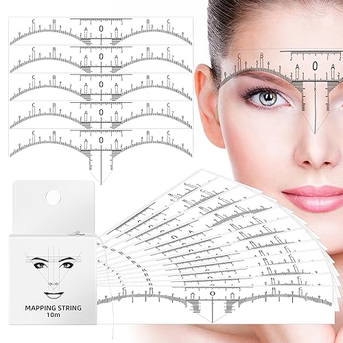 ATOMUS 100 Pack Eyebrow Ruler with 1 Box 10M Eyebrow Mapping Ink String 100pcs Disposable Eyebrow Mapping Stickers with 1pc Pre-Inked Microblading String for Marking Symmetrical Eyebrows (Red)