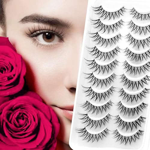 7 Pairs Cat-Eye Lashes Flu-ffy 15mm Fox Eye Lashes Curly Volume Eyelashes Faux Mink Lashes that Look Like Extensions Lashes Wispy False Eyelashes Natural Look(Z03)