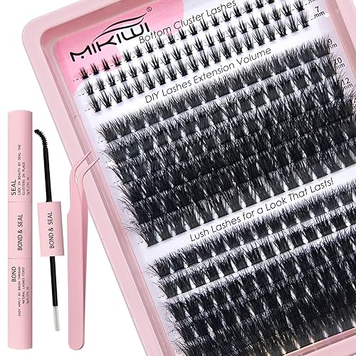 MIKIWI Lash Clusters Kit 9-16mm Fluffy Cluster Eyelash Extensions with Bottom Lashes D Curly Volume Cluster Lashes with Bond and Seal, Lash Applicators Lash Extension Kit(U01+100D+120D)