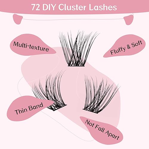 Cluster Lashes, 72 Pcs Individual Lashes, Lash Clusters DIY Eyelash Extension, Super Thin Band Reusable Soft & Comfortable (Eager-D-10-16mix)