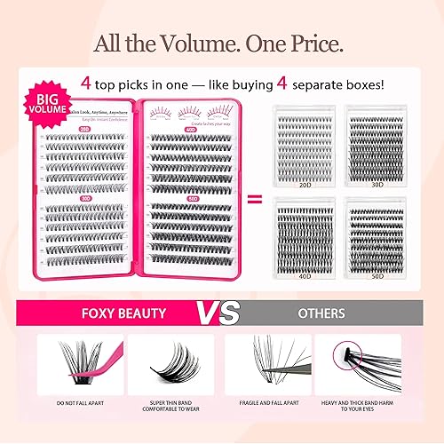 Lash Clusters Kit 480pcs Lash Clusters 20D30D40D50D D Curl Eyelashes DIY Natural Fluffy Eyelash Extensions Kit 9-14MM Lashes & Lash Bond and Seal for Beginner at Home