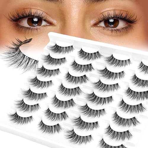Lashes Mink Fluff False Eyelashes Cat Eye 8D Volume Lashes Wispy Pestañas Postizas D Curl Fake Lash Extension Eyelash Strips Natural Look 10 Pairs Pack by JIECAI, Fluff Mink