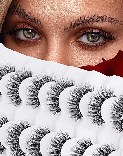 Veleasha Cat Eye Lashes Wispy Lashes Lightweight Eyelashes Dramatic False Eyelashes Clear Band Lashes Look Like Eyelash Extensions 9-17MM 7 Pairs Pack (Rio Vista)