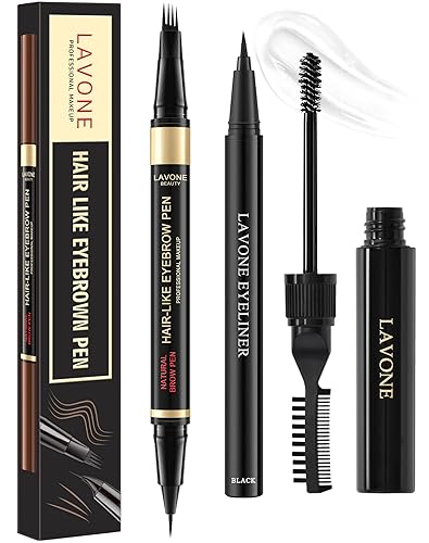 Eyebrow Pen Kit, with Microblading Eyebrow Pen, Eyebrow Gel, Eyeliner, Eyebrow Brush, Eyebrow Pencils for Women, Waterproof, Smudge Proof, Long Lasting Makeup Formula - Dark Brown