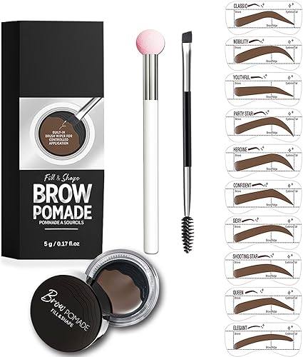 Eyebrow Stencils, Eye Brow Stencil Kits Brow Stamp Perfect Eyebrows Waterproof, Eyebrow Stamp Trio Kit with Sponge Applicator Smudge-proof for Women With 10PCS Eyebrow Shaping Kit, Dark Brown