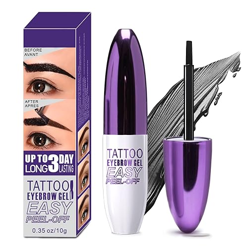 Peel Off Eyebrow Gel, Waterproof Tattoo Eyebrow Gel Easy Peel Off for Women, Last Up to 3 Days Natural Brow Color, Easy Application for All Skin Types - 03 Gray Brown