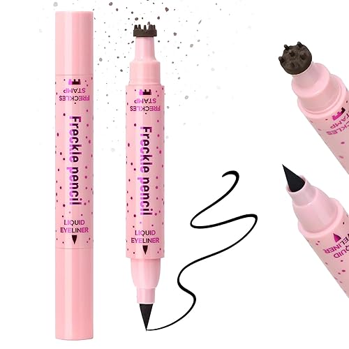 2 in 1 Faux Freckle Stamp and Liquid Eyeliner Pen, Natural Lifelike and Quick Dry Liquid Eyeliner Pen, Waterproof and Long Lasting with Sunkissed Face Fake Freckles Stain Marker Pencil - DARK
