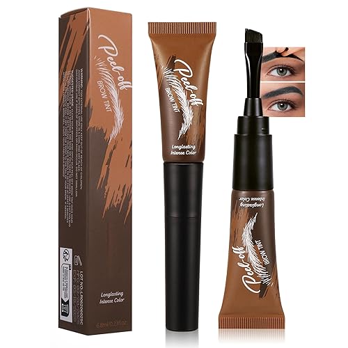 Eyebrow Gel - Peel Off Eyebrow Tint with Eyebrow Stencils, Long-Lasting & Waterproof Brow Gel for Women and Girls Create Fuller & Defined Brows Makeup (Gray Brown)