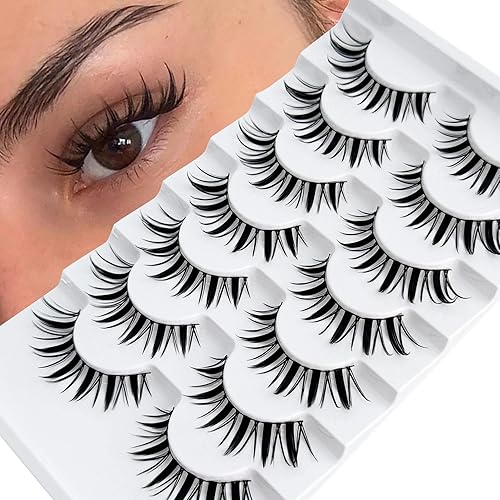 outopen 10 Pairs Manga Lashes Natural Look Clear Band Lashes Japanese Anime Eyelashes Asian Style False Eyelashes Wispy Thin Band False Lashes Korean Makeup Fake Eyelashes Fairy Lash Clusters