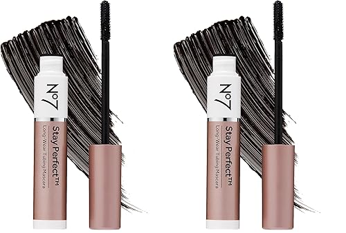 No7 Stay Perfect Mascara – Smudge-Free, Long-Lasting Volume Up to 24 Hours with Straight Brush – Rain & Tear-Proof (7ml) (Pack of 2)